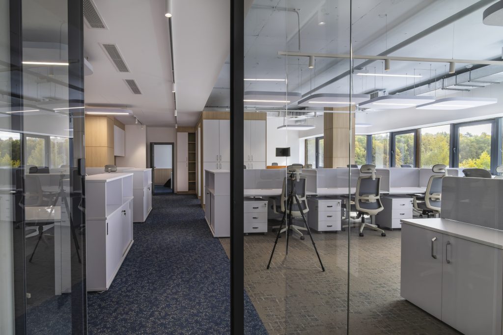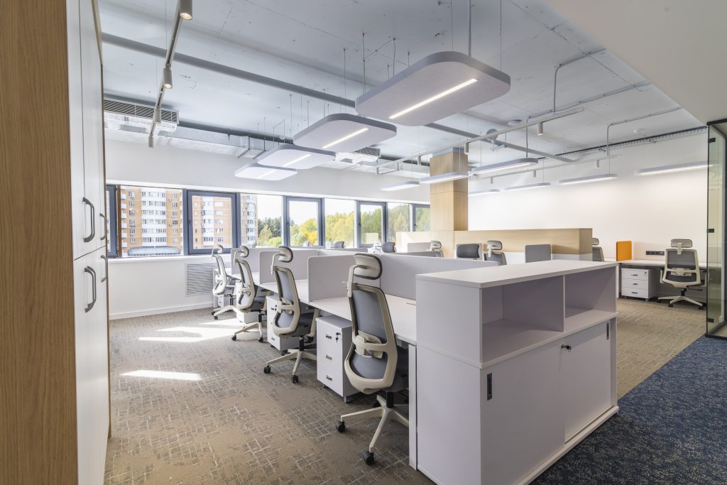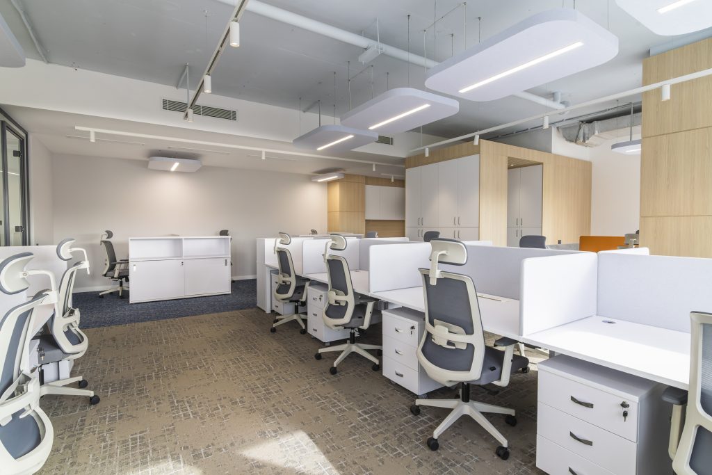 В этом проекте наша команда поставляла мебель для рабочих зон: рабочие столы, шкафы, кресла и переговорную зону.